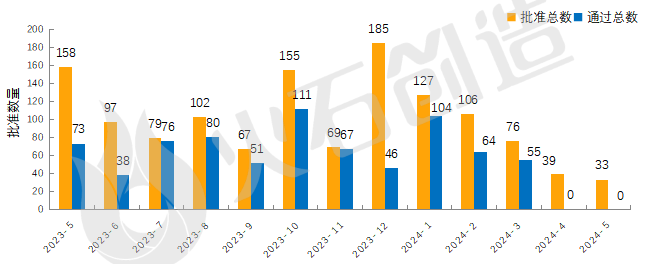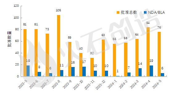 图1 2023年5月—2024年5月FDA药物批准数量变化情况